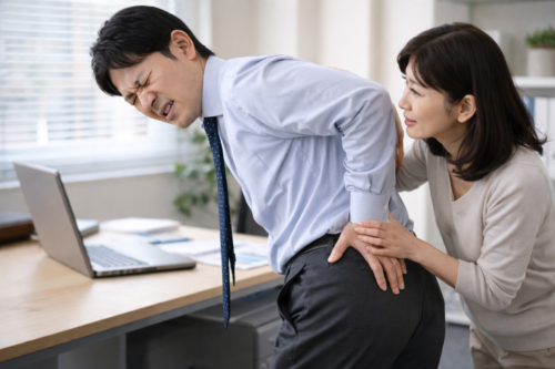 デスクワークでは、座りっぱなしが続きやすく、腰やお尻への圧が増えやすい点が課題になります。一般的には、椅子に深く座れず浅く腰掛ける癖や、足を組む習慣があると、骨盤の傾きが強まりやすいと言われます。結果としてお尻周りの筋肉が硬くなり、疲れ坐骨神経痛のような症状が出やすくなる場合があります。さらに、画面に顔を近づける姿勢が続くと背中が丸まり、骨盤が倒れて腰に圧が乗りやすくなります。疲れがたまっているほど姿勢の戻しが遅れ、同じ負担が延々と続く形になりやすい点が落とし穴です。