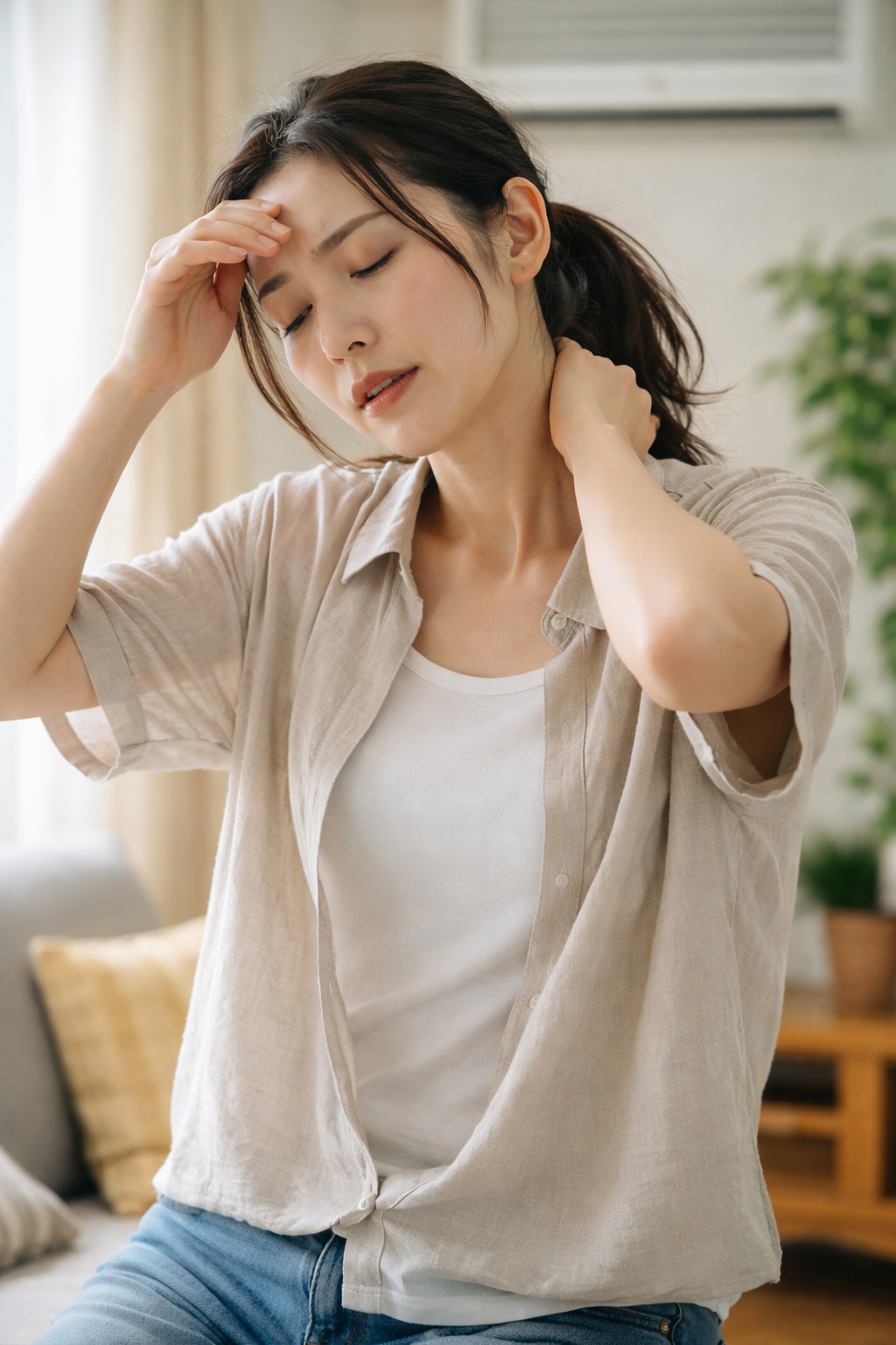 特に夏は注意が必要です。汗で水分と塩分が失われ、血液の循環が不利になり、立ち上がり動作で一気に症状が出ることがあります。夜勤や不規則な生活、冷房による冷えなども重なると、疲れ めまいが続きやすくなります。立ちくらみが出た時は、転倒を防ぐことが最優先なので、まず安全な場所で座る、頭を低くする、動作を止めることが基本になります。